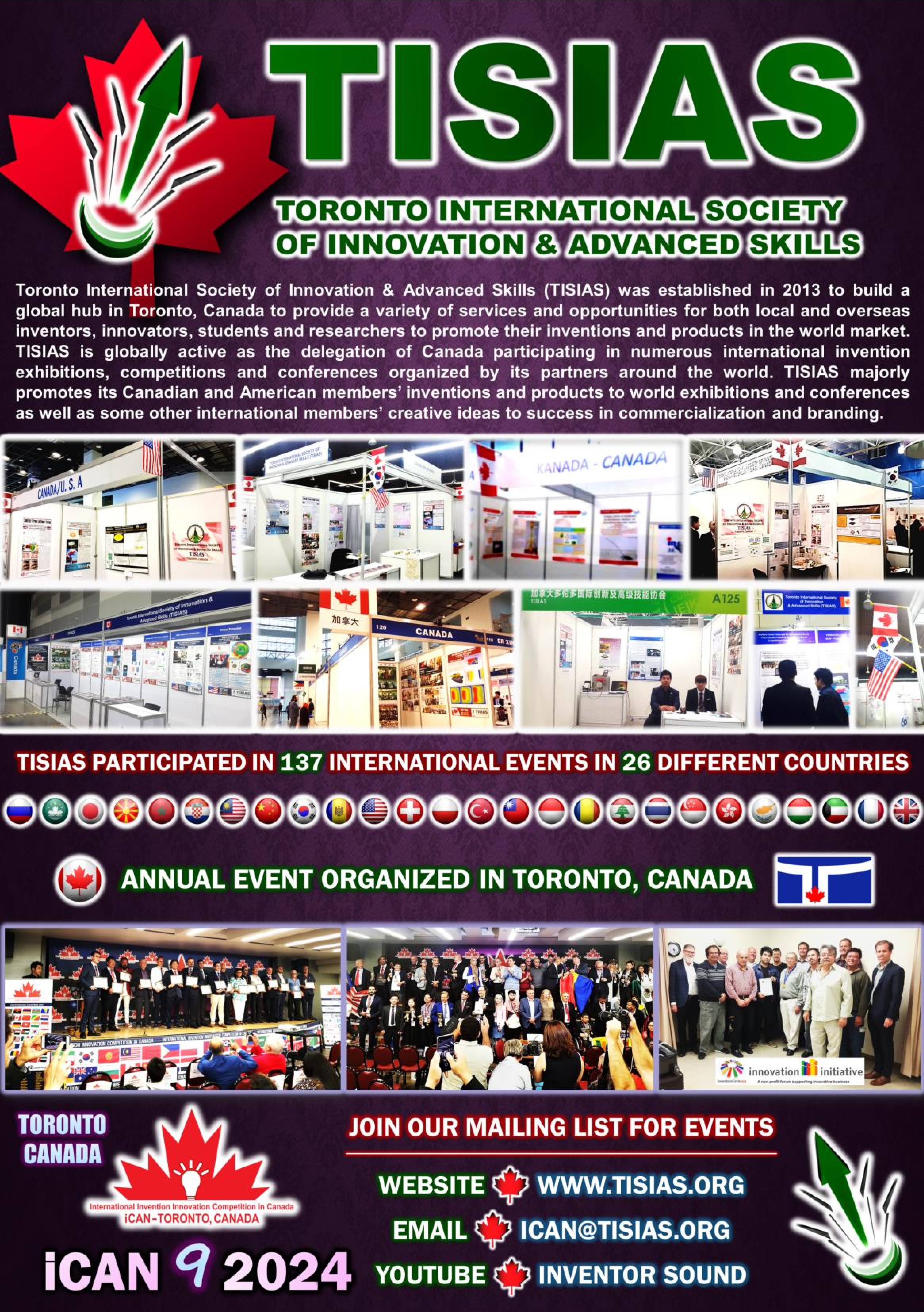 加拿大国际发明创新大赛( International Invention Innovation Competition in Canada, iCAN)与日内瓦国际发明展(IEIG)、国际创新发明竞赛 (IIIC)、德国国际创意发明及新产品展(iENA)、美国矽谷国际发明节 (SVIIF)、亚洲创新发明展览会(AEII)共同构成了国际六大著名创新发明大赛,也是世界公认的加拿大发明家顶级赛事。2024年,第9届加拿大国际发明创新大赛—The 9th international invention innovation Competition in Canada 依然以加拿大多伦多为基地,多元文化为主流,汇集了许多受欢迎的项目,共涉及80个国家。